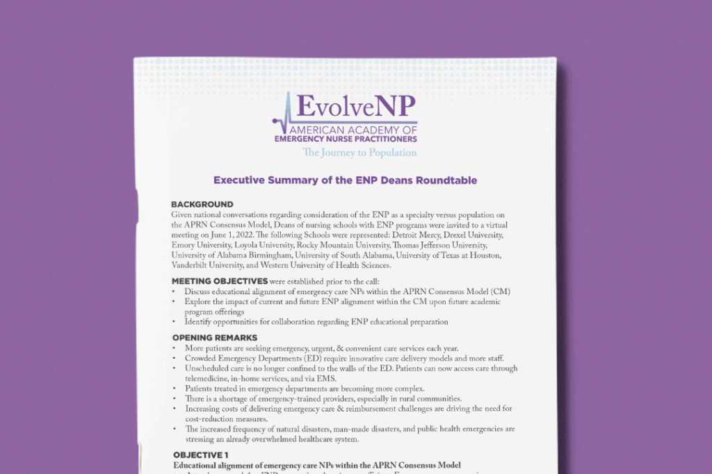 Emergency nurse practitioners (ENPs) are care for patients across lifespan and acuity continuums, often in fast-paced and high-stakes environments. Across the country, ENPs are meeting patient needs where they are most needed, driving improvements in emergency care, and playing a pivotal role in interprofessional teams. Now is the time to understand the unique value of ENPs—and to get involved in shaping the future of emergency care.
